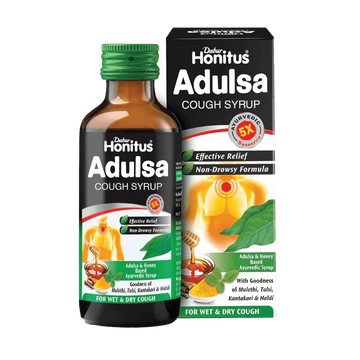 Dabur Honitus Adulsa 100ml is a herbal syrup formulated to support respiratory health. It combines traditional Ayurvedic ingredients known for their soothing properties to help relieve cough and throat irritation. This natural remedy aids in maintaining clear airways and promotes easy breathing, making it a trusted choice for adults seeking gentle yet effective respiratory support.